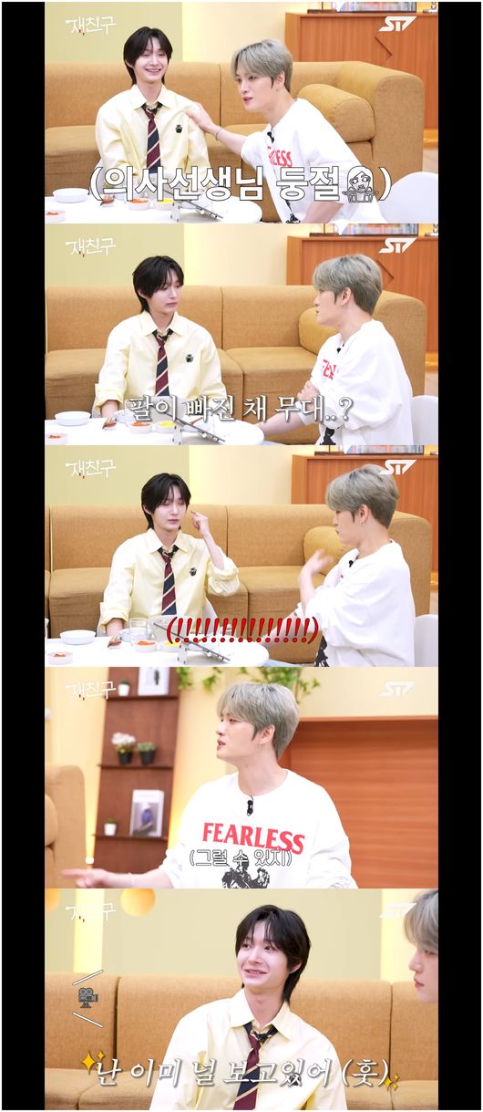 한편 동화는 계훈이 리더로서 뽀뽀를 즐겨한다고 말했다. 계훈은 “일단 저는 리더다. 한 번에 뽀뽀를 하진 않는다. 형이 사랑한다, 형이 뽀뽀해도 될까? 이런다”라며 “다 장난으로 쌓아가지”라며 쿨하게 말했으나, 동화는 자신이 몸소 시범을 보이며 계훈이 자고 있는 멤버에게 볼 뽀뽀를 한다고 폭로해 스튜디오를 뒤집었다./osen_jin0310@osen.co.kr