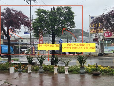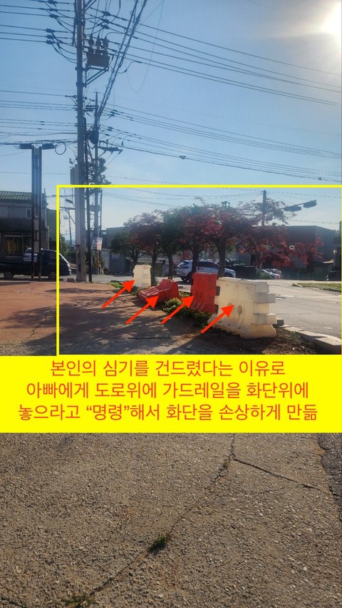 그 뒤로 한 달 동안은 저희 아버지 사업장을 지켜보시면서 트집 잡기를 기다린것 같습니다. 평소에도 화단을 꾸미는 것을 좋아하는 아빠였기에 사업장 앞에 심어져있는 나무를 다듬었는데(평소에는 수고한다면서 칭찬하고 지나갔음), 갑자기 본인의 화단의 나무를 함부로 손댔다는 꼬투리를 잡으며 시도때도 없이 부동산 안에 손님이 있어도 다짜고차 찾아와선 나가라고 소리를 치시고, 저희 아빠가 6개월동안 손수 다듬었던 화단을 저희 아빠에게 망가트리라고 명령해서 아빠께서 직접 본인이 반년동안 가꾼 화단에 저 큰 가드레일 4개를 옮기면서 화단까지 손상된 상황입니다. 딸로서는 이부분이 너무나 속상합니다. 자세한 내용은 아래 글과 함께 사진으로 첨부 드리겠습니다.