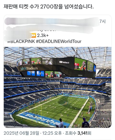 이상한 거 맞음 솔로로 체급 오른 건 100퍼 맞는데 티켓팅 시작한지 4개월이나 지났고 1인 6매인데도 아직 매진 안됨. 와이지는 3차례나 티켓값 내렸음 기사 같은 거 보면 미국 성적이 되게 잘 나오던데 오히려 현재 가장 안 팔린 곳이 캐나다랑 미국임 본핑크 때보니 공연 직전에 몇 십장 팔린 거 보면 소피도 매진될 거 같긴 함 조금 애매한 건 캐나다고 ╋글쓴이가 무슨 프로모? 썼다고 했는데 맞음 멧라이프 때 티켓 40퍼 할인해도 안 팔려서 팬들이 파라솔 세워서 무료 티켓 나눠줬고 티켓 마스터에서 무료티켓 이벤트 열었었음