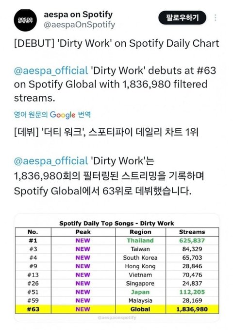 ㅋㅋㅋㅋㅋㅋㅋㅋㅋㅋ 슴퀴들아 이제 알겠냐? 슴과 에스파가 빈집털이 , 금욜발매 , 미래퍼와 협업 , 영어곡 빌보드 버전 4개 제한에 맞춰서 풀로 4가지 버전까지 진짜 빌보드 입성 해보려고 찌질하게 애플까지 등에 업고 온몸 비틀기로 쑤셔도 못들어가는게 빌보드다 빌보드를 조스로 보면 안된다구 ㅋㅋㅋㅋㅋㅋㅋㅋㅋㅋㅋㅋ 고작 멜론 따위랑은 다르다구 ㅋㅋㅋㅋㅋㅋㅋㅋㅋㅋㅋㅋㅋ