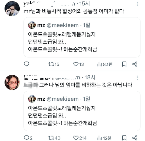 그룹명 써방하고 노래 듣기싫다는 트윗 썼다가 몇천인용으로 패드립당하고 일반인 인스타 아이디로 신상까지 터는중이래