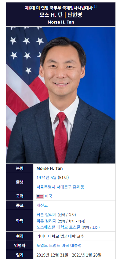 무려 도널드트럼프 미국 대통령에 의해 국제형사사법대사로 임명되었던 모스탄이 정체불명?