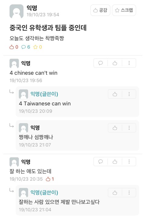 중국인이랑 팀플 해본 사람들 후기 좀 알려줘 ㅠㅠ