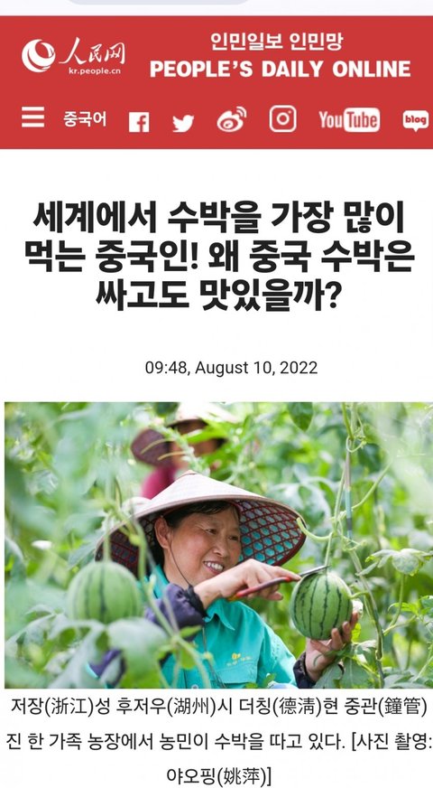 중국 수박이 우수하고 싸기 때문에 중국과 공산당이 한국인들보다 우수하다는 말임