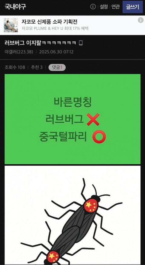 러브버그라고 안부르고 중국털파리라고 억지주장함