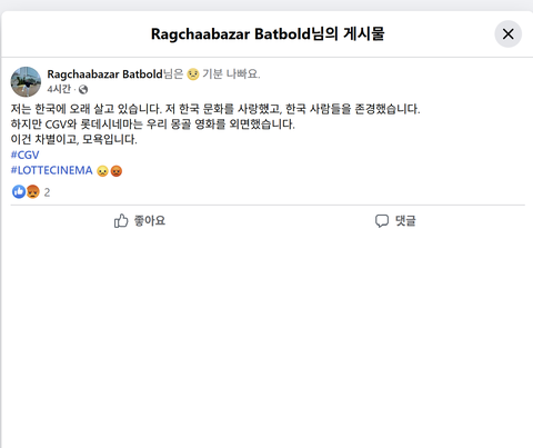 cgv랑 롯데시네마 위장수사 무관심에 몽골인들 분노중