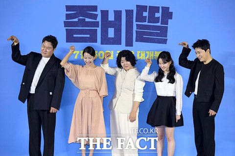 영화 '좀비딸'(감독 필감성)의 제작보고회가 30일 오전 CGV 용산아이파크몰에서 진행됐다. 현장에는 필감성 감독을 비롯해 배우 조정석 이정은 조여정 윤경호 최유리가 참석해 작품과 관련된 다양한 이야기를 전했다.