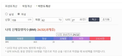20대후반~30대초반 결혼 적령기 여자기준으로 키 159에 몸무게는 60~62 왔다갔다 하는데 많이 나가는 건가요??