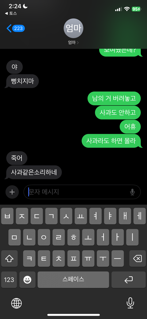 우리집 엄마도 한성질 하시는데 문자로 욕짓거리는 안하심