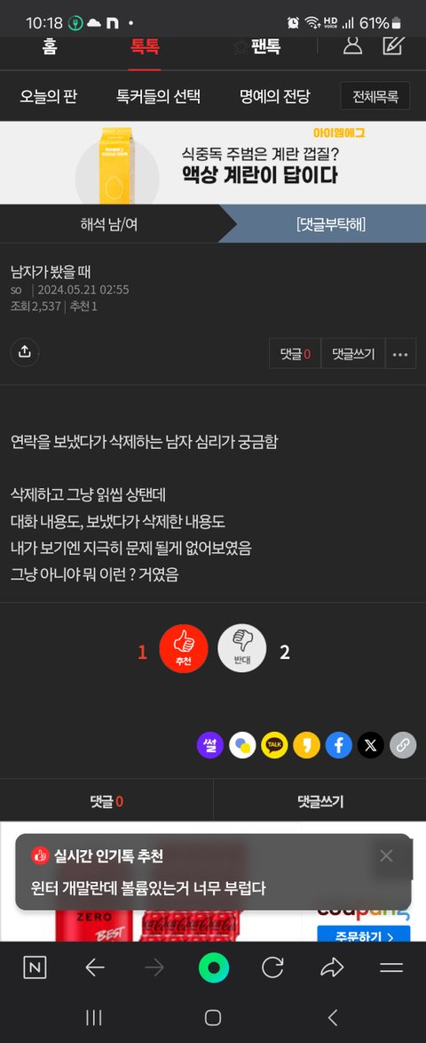 폰 안을 조작하고 네이트판을 지켜봤어.