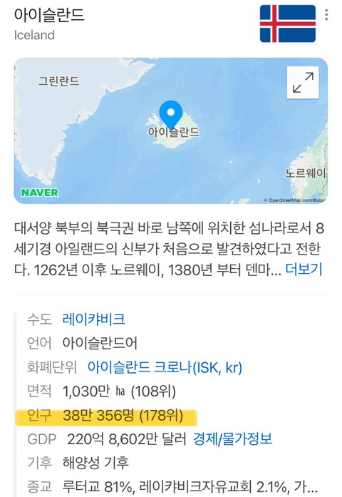 아이슬란드 케이팝 최고 피크가 로제 아파트 4860 방탄 다이너마이트 2479였는데 에스파가 진입 1위 17000으로 다 발라버림 아이슬란드 현지 국민가수도 진입 13000이 최고기록
