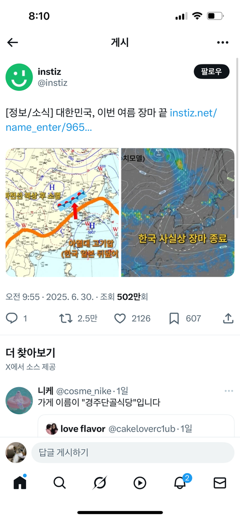 뭐노 사실 지금까지 비온거 장마같지도 않았는데ㅋㅋㅋ
