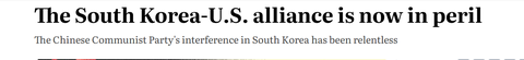 한미동맹, 이제 위기에 처했다중국 공산당의 남한에 대한 간섭은 끊이지 않았습니다.By Morse Tan - Monday, June 30, 2025