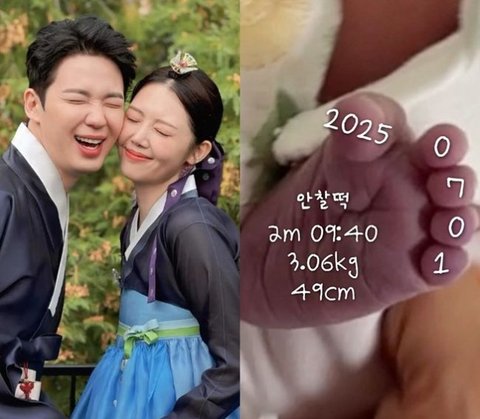 1일 정윤혜는 자신의 소셜 미디어 계정 스토리를 통해 “안찰떡. am 09:40. 49cm 3.06kg”이라는 글과 함께 아이의 탄생을 알렸다.
