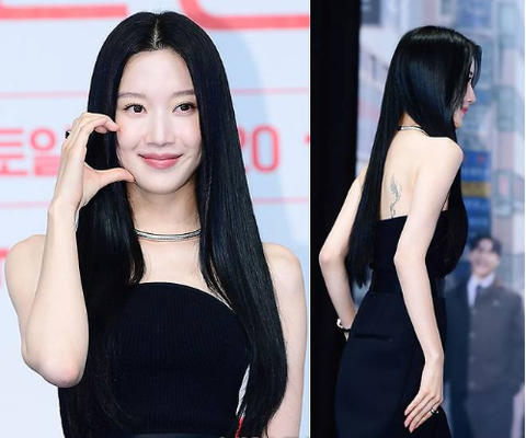 두 번째 컷은 더 강렬했다. 측면에서 드러난 등 라인에 깃든 타투가 단숨에 시선을 붙잡았다. 긴 흑발이 그대로 흘러내리며 어깨 라인을 따라 내려오는 흐름, 그리고 깔끔한 벨트 디테일이 고급스러운 블랙 수트와 절묘한 조화를 이루며 단아함과 반전을 동시에 살려냈다.