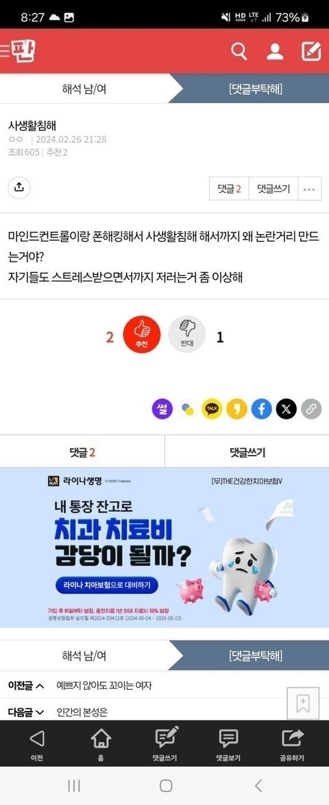 나보고 조현병이래 다들 미친거야?