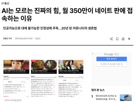 자주 들락거리는 판이 기사로 뜨니까 뭔가 신기해서 퍼옴 ㅎㅎ