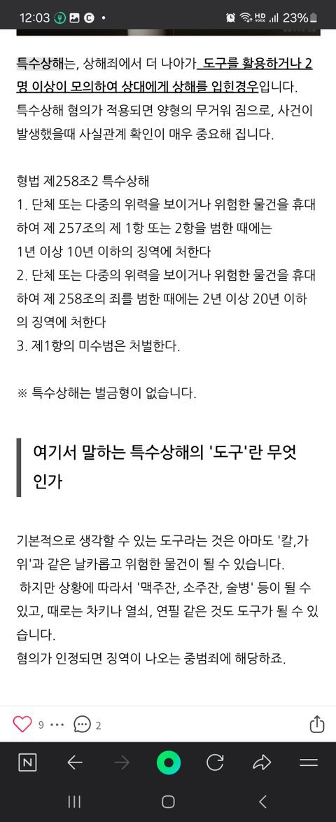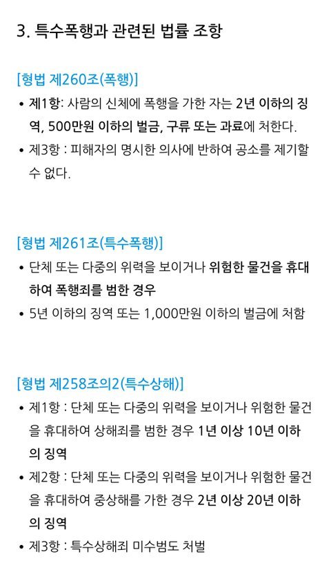 특수상해죄는 상해죄와 근본적인 원리는 같은데요. 하지만, 위험한 물건을 사용하여 "상대방의 생리적 기능을 훼손"하거나, 다중이 위력을 보여 상해죄를 저지르는 것을 말합니다.