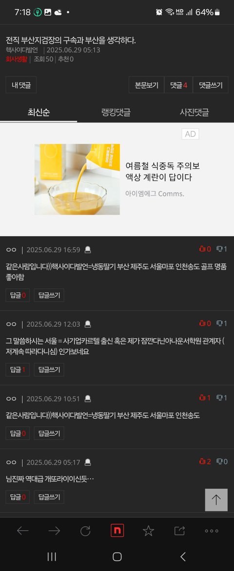 댓글 많은 톡