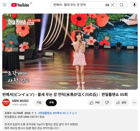 (사진3 설명) 빈예서(ビンイェソ) - 물새 우는 강 언덕(水鳥が泣く川の丘)|한일톱텐쇼 55회
