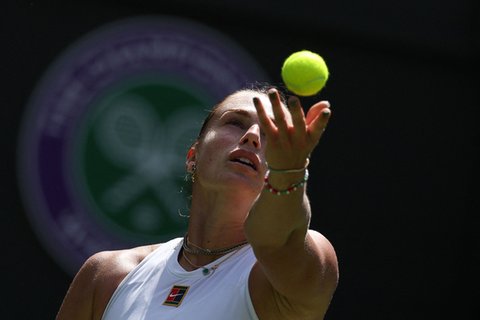 (사진5 설명) 강서브가 주 무기인 사발렌카는 민소매 유니폼을 착용해 활동성을 극대화했다. AFP=연합뉴스