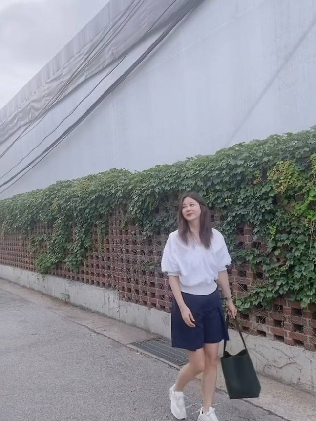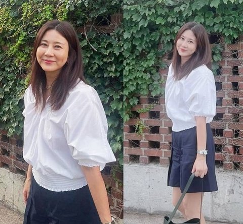 화이트 셔링 블라우스에 네이비 반바지를 매치해 깔끔하고 단정한 스타일을 완성했으며, 168cm의 늘씬한 비율과 잘 어울리는 화이트 스니커즈로 편안한 무드를 더했다. 손에는 짙은 초록빛 토트백을 들어 단조로움을 덜고 감각적인 포인트를 살렸다.특히 결점 없이 매끈한 피부에 자연스럽게 넘긴 생머리, 꾸안꾸 느낌의 내추럴 메이크업이 어우러지며 53세라는 나이가 무색할 만큼 청순미를 자아냈다. 여기에 살짝 미소 지은 표정과 여유로운 분위기가 더해져 일상의 순간도 화보처럼 보이게 만들었다.