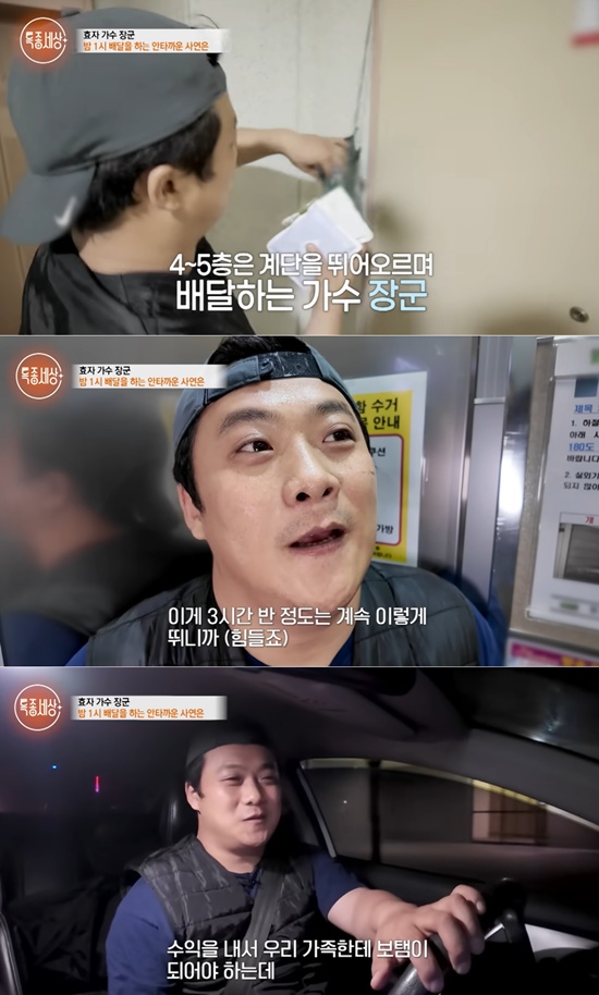 이번 방송에서 장군은 깊은 밤 아파트 단지를 뛰어다니며 녹즙 배달을 하는 모습으로 시청자의 눈길을 끌었다. 땀에 흠뻑 젖은 채 묵묵히 일하는 그의 모습은, 무대 위 반짝이는 가수 장군이 아닌 가족을 위해 한 걸음 더 뛰는 가장의 현실을 고스란히 보여주며 큰 울림을 전했다.