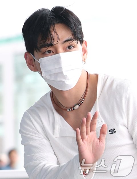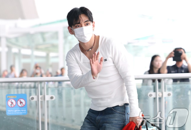 방탄소년단(BTS) 뷔(본명 김태형)가 해외 일정을 위해 4일 오전 인천국제공항을 통해 출국하며 인사를 하고 있다. ⓒ News1 권현진 기자