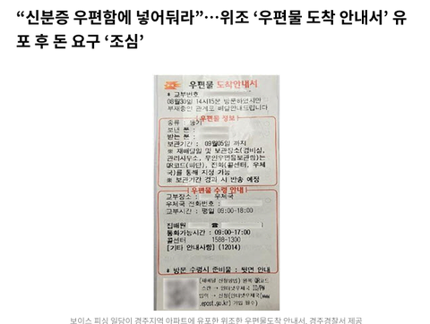 우편물도착안내서를 보면 전국적으로 저희 가족과 같은 피해자가 다수 발생할 가능성이 높은 상황....