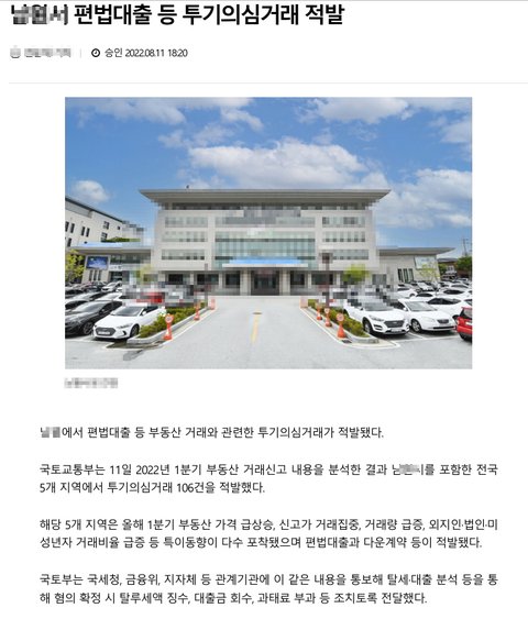 이미 제가 사는 지역은 2022년 국토부에서 편법대출, 투기의혹이 의심되는 지역으로 보도를 냈으며 제가 사는 지역에서는 2019년에서 2022년까지 많은 경매가 이루어졌습니다.