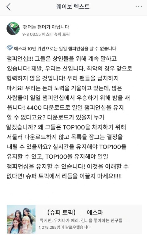 그중 절반 이상이 에스파만 듣는다는 게 말이 됨?