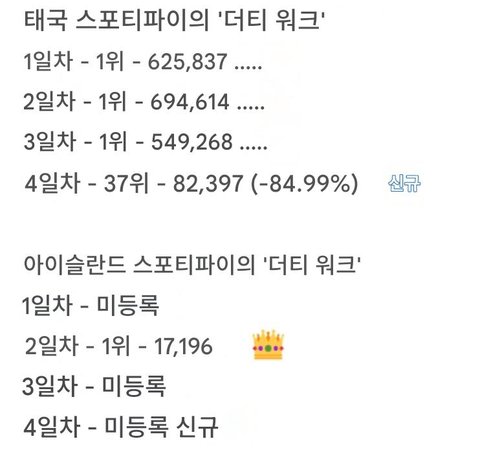 18,000회 스트리밍으로 스포티파이 1위에 올랐다가