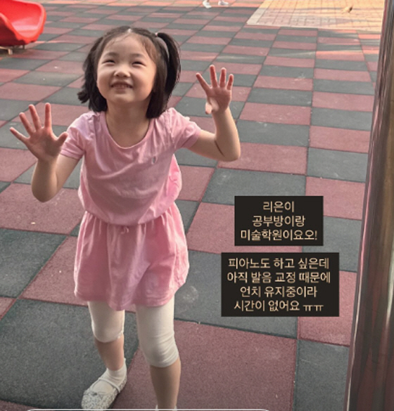이날 이다은은 '리은이 사교육'을 묻는 질문에 "공부방이랑 미술학원 다닌다. 피아노도 하고 싶은데 아직 발음 교정 때문에 언어치료 유지 중이라 시간이 없다"고 전했다.