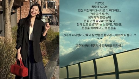 키가 170cm에 몸무게 59kg이라는 이다은은 "임신 직전까지 3-4kg 더 빼야 한다. 근데 임신 직전도 몸무게가 55kg이었는데 운동 안 한 몸이라 탄탄함이 전혀 없고 흐물거리는 느낌이었다"고 했다.이어 "근력 운동을 해야 한다. 근데 나는 근육이 잘 안 붙는 몸이라고 하셔서 좌절"이라며 "'앞으로 3개월 내로 남은 거 빼자'고 생각하고 있다. 워낙 많이 찐 경우라. 27kg 쪘다. 너무 빨리 빼면 또 요요가 오지 않을까"라고 전했다.