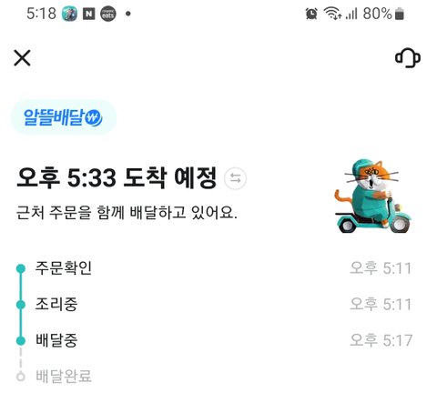 11분에 주문했는데 17분에 배달 시작