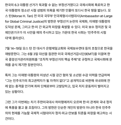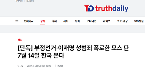 [단독] 부정선거·이재명 성범죄 폭로한 모스 탄 7월 14일 한국 온다 < 정치 < 기사본문 - 트루스데일리