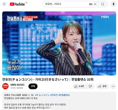 (사진3 설명) 전유진(チョンユジン) - 가라고(行きなさいって)|한일톱텐쇼 32회