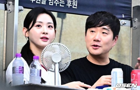 [OSEN=잠실, 지형준 기자] 3일 오후 서울 잠실구장에서 ‘2025 신한 SOL Bank KBO리그’ 두산 베어스와 삼성 라이온즈의 경기가 열렸다.두산은 곽빈, 삼성은 최원태가 선발로 나섰다.시구자를 나선 배성재 아나운서가 아내 김다영 아나운서와 경기를 관전하고 있다. 2025.07.03 /jpnews@osen.co.kr