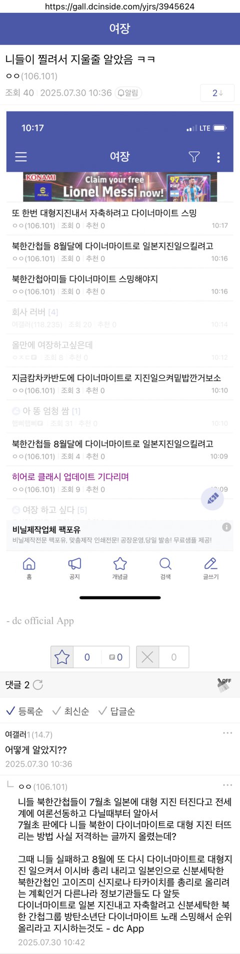 북한은 현재 한국과 친하게 지내고 협력하길 바라는 일본 이시바 총리를 쫒아내고 일본인으로 신분세탁한 북한간첩인 고이즈미 신지로와 타카이치를 일본 총리로 올리기위해 다이너마이트를 터뜨려 일본에 초대형 지진을 일으키려고 애쓰고 있음