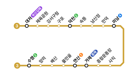 부산 지하철 3호선은 대저역에서 출발해 수영역까지 연결되는 노선입니다.