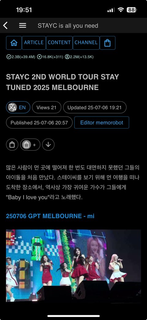 영상 19개, STAY TUNED 2025 MELBOURNE https://ch.memorobot.com/stayc/content/88