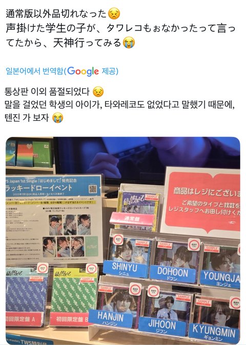 일본에 투어스 인형뽑기도 있는데 그것도 품절됨 ㅋㅋㅋ
