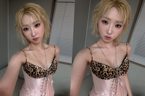 누드톤 상의에 레이스 디테일이 더해진 디자인은 멀리서 보면 착시를 일으킬 만큼 도발적인 무드를 자아낸다. 거기에 블론디 컬러의 짧은 헤어스타일과 글로시한 메이크업까지 어우러져 강렬한 존재감을 뽐냈다. 팬들은 “진짜 깜짝 놀랐다”, “워터밤에서 대체 뭘 보여주려는 거야”, “과감한 패션이 공민지답다”는 반응을 보이고 있다.