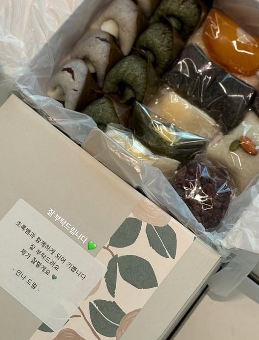 전 소속사에는 감사한 마음을 담은 선물을 보냈다면, 현 소속사에는 앞으로의 동행에 같이 힘을 내보자는 응원을 담은 선물을 보냈다. 유인나는 초록뱀엔터테인먼트에 떡을 돌린 것으로 알려졌고, 떡과 함께 ‘초록뱀과 함께 하게 되어 기쁩니다. 잘 부탁드려요. 제가 잘할게요’라는 문구를 적었다.