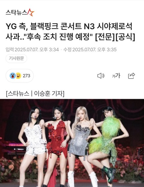 블랙핑크 콘서트 논란 결국 사과했네