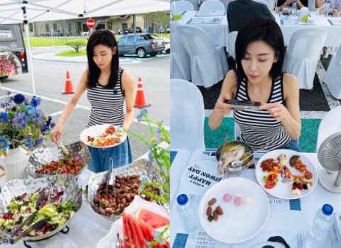 생일을 맞은 하지원은 팬들이 준비한 푸짐한 밥차 음식 앞에서 행복한 미소를 지으며 고마움을 표현했다. 꽃으로 가득 채워진 테이블과 샐러드부터 고기, 과일까지 정성스럽게 차려진 식판을 앞에 두고 인증샷을 남기며 팬들과의 따뜻한 유대감을 드러냈다.
