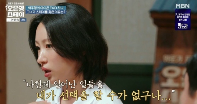 이어 “너무 어린 나이에 연예인을 시작해서 계약이 끝나고 보니 세상을 모르고 있더라. 우물 안 개구리로 산 것이다. 최근 여러 가지 일을 겪으면서 ‘내 삶이 내 뜻대로 되는 게 아니구나. 내게 일어난 일들을 내가 선택할 수 없구나’라는 걸 알게 됐다”면서 ‘오은영 스테이’를 찾은 이유도 전했다.