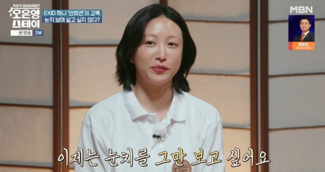 하니는 또 “내가 눈치를 많이 보는 편인데 이제 눈치를 그만보고 싶다. 눈치를 보는 자체가 힘든데 눈치를 자꾸 봐야하는 환경에 있는 것 같다”라고 고백했다.