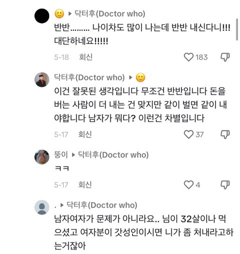 김밍이랑 닥터후는 데이트할때 더치페이하나