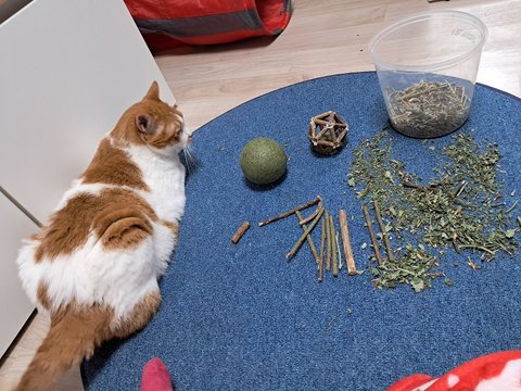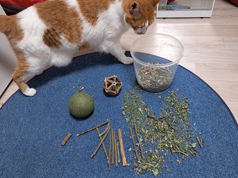 혹시나 관심보일까 싶어 그동안 사놓은 캣닢들을 한곳에 놓았음.